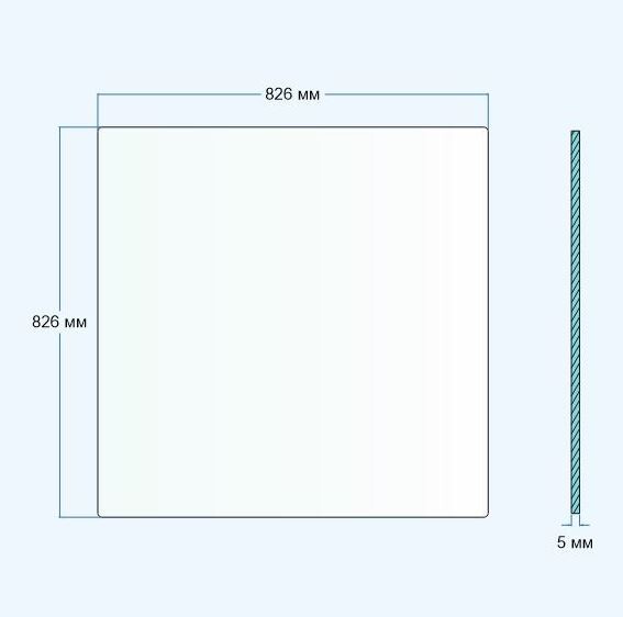 Плоское защитное стекло для уличных часов 826х826х5 мм